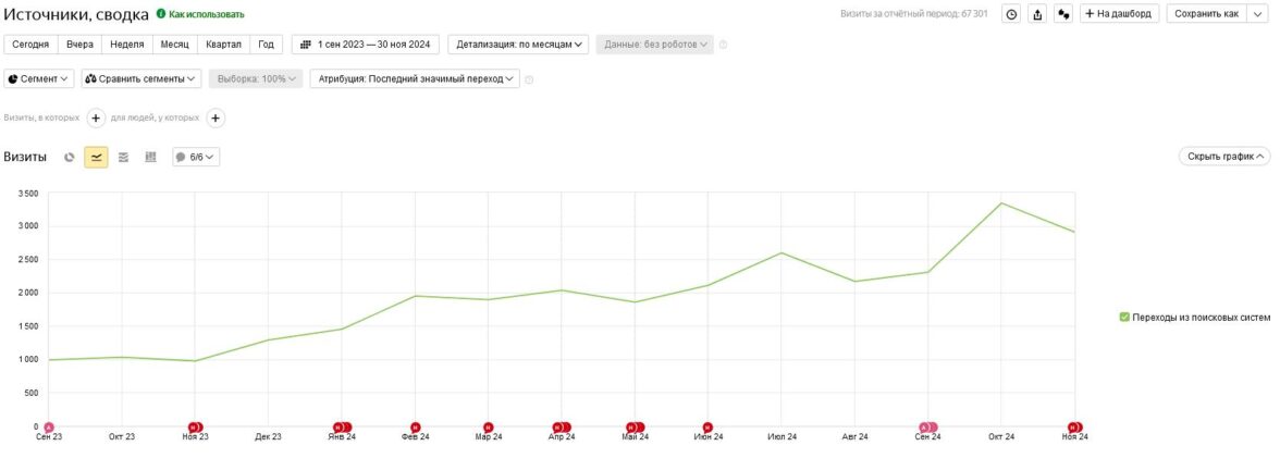 В результате за год работы над проектом трафик из поисковиков вырос более чем в 3 раза — с 991 до 3 341 визита в месяц.