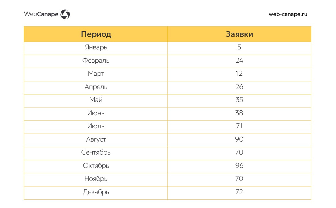 В результате мы обеспечили клиенту устойчивый рост числа заявок в течение всего 2024 года — с 5 до 96 заявок в месяц. И, судя по средней позиции показа, объявления клиента показывались на топовых строках. Конверсия рекламы за этот период выросла до 6%.