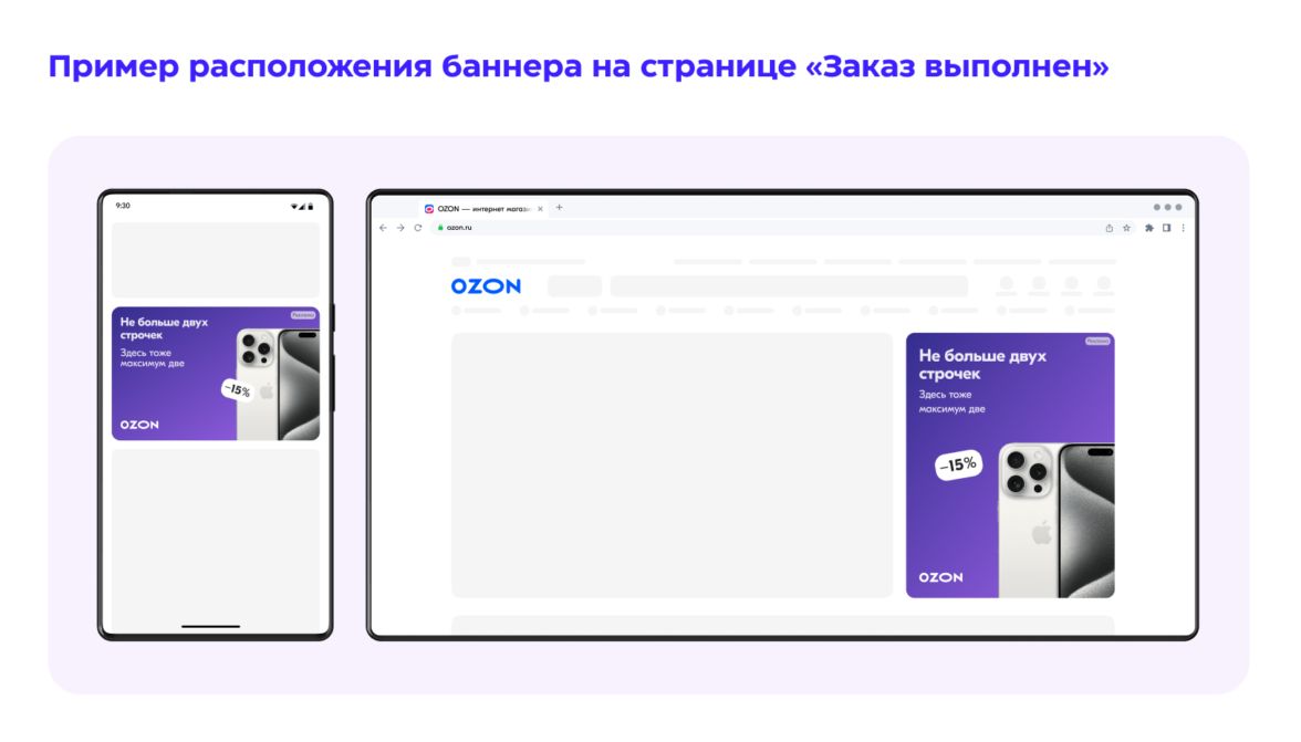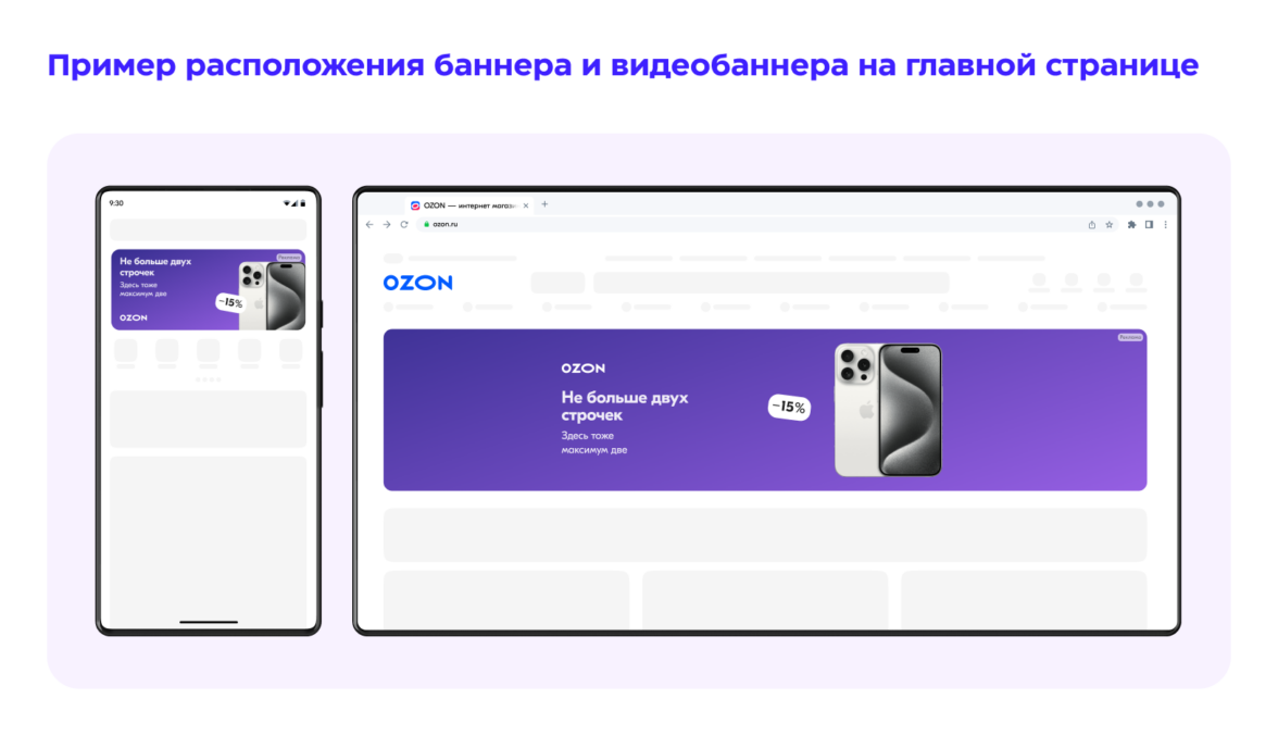 Для выполнения плана мы выбрали самые охватные инструменты Ozon — баннер и видеобаннер на главной странице сайта и мобильного приложения.
