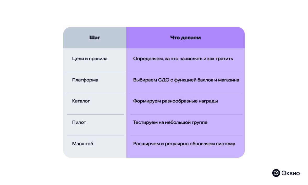 Внедрение корпоративной валюты требует продуманного подхода. Чтобы система работала стабильно и приносила результат, процесс лучше разбить на несколько последовательных шагов.