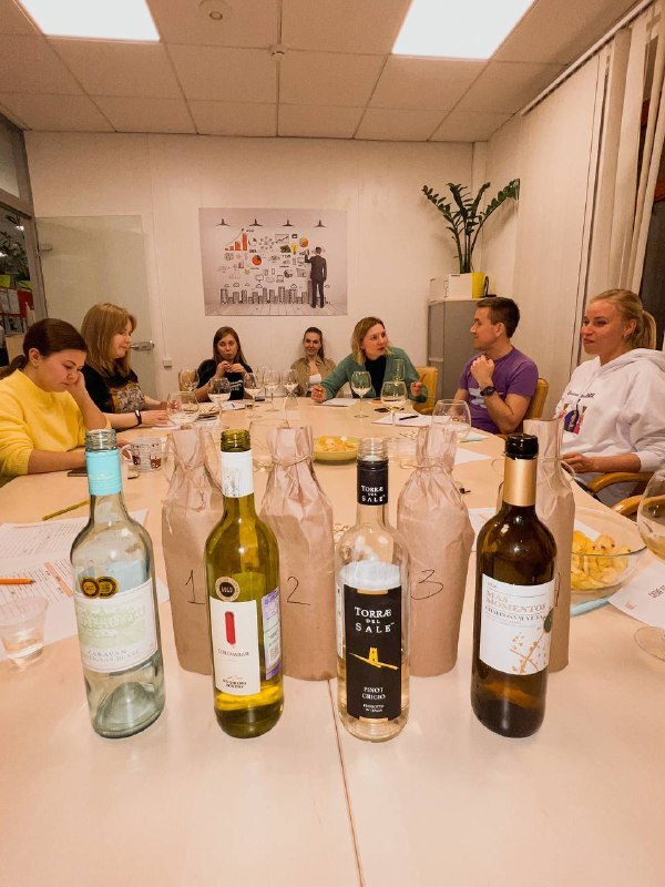 Наше следующее корпоративное мероприятие мы назвали Blind wine tasting, где в качестве сомелье выступили руководители двух департаментов: IC — Дарья Набойщикова и Digital – Анатолий Шишкин. Мы не просто дегустировали вино, но и пытались угадать его сорт, страну и год. Наша камерная дегустация прошла насыщенно, познавательно, а самое главное душевно!