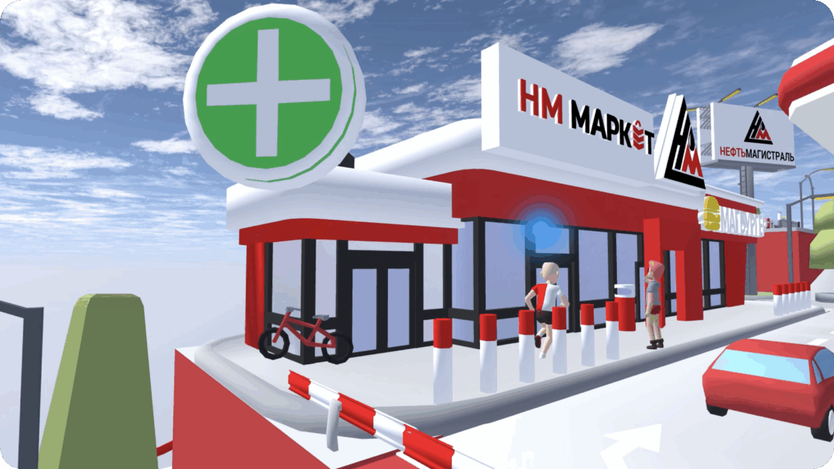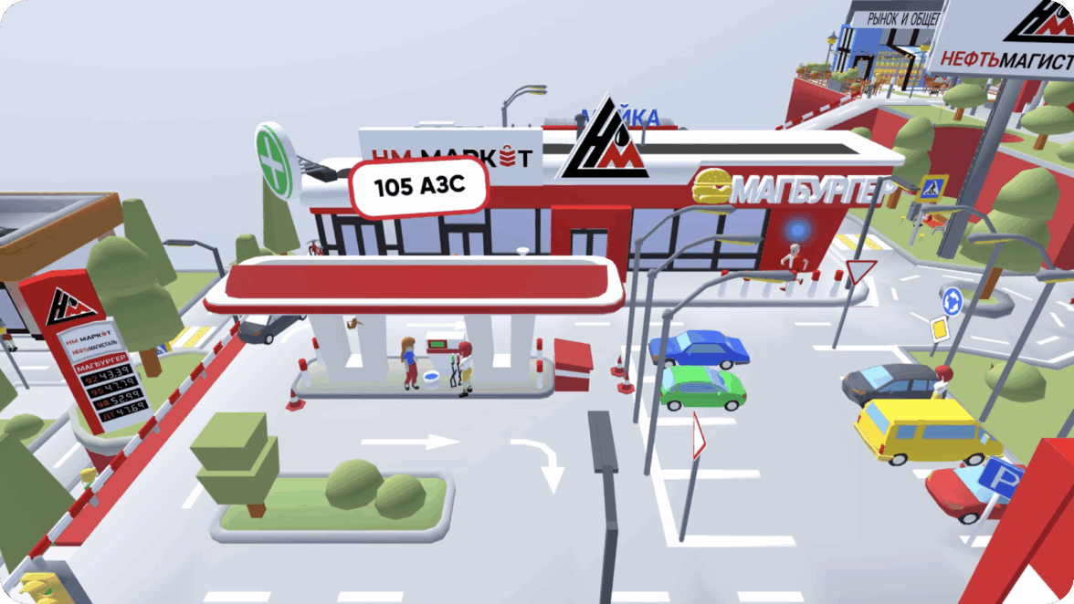 В основе проекта — виртуальный город-пазл, где оживают все направления бизнеса ТД «Нефтьмагистраль». Фуры везут грузы по дорогам, на заправках обслуживают посетителей, курьеры развозят заказы, в кафе гости наслаждаются едой. В парке сотрудники делают зарядку, дети играют, собаки бегают по аллеям.