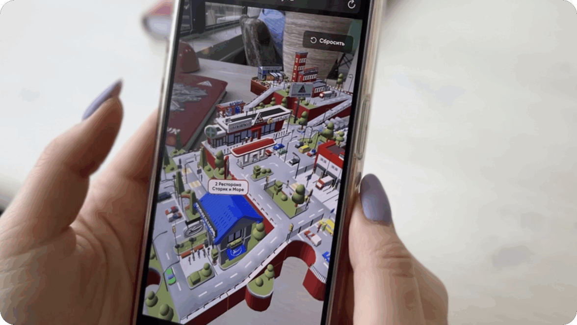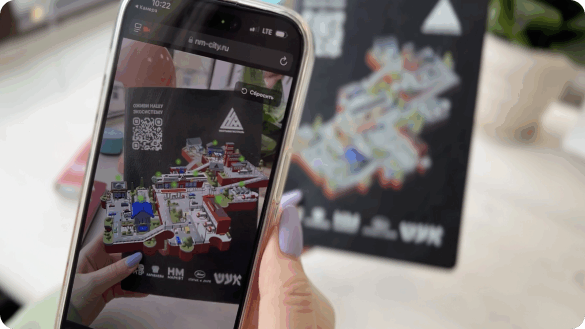 Главное требование — запуск без скачивания приложений. Открыл камеру, навёл на QR-код, и город уже загружается в браузере. Работает на любом смартфоне. Не нужно объяснять, как установить программу или зарегистрироваться. Просто взял сувенир — и всё работает.