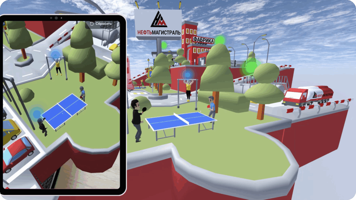 Мы создали интерактивный 3D-город, который запускается прямо в браузере смартфона. Никаких приложений, никаких сложных инструкций — просто навёл камеру на QR-код на сувенире, и перед тобой целый корпоративный мир.