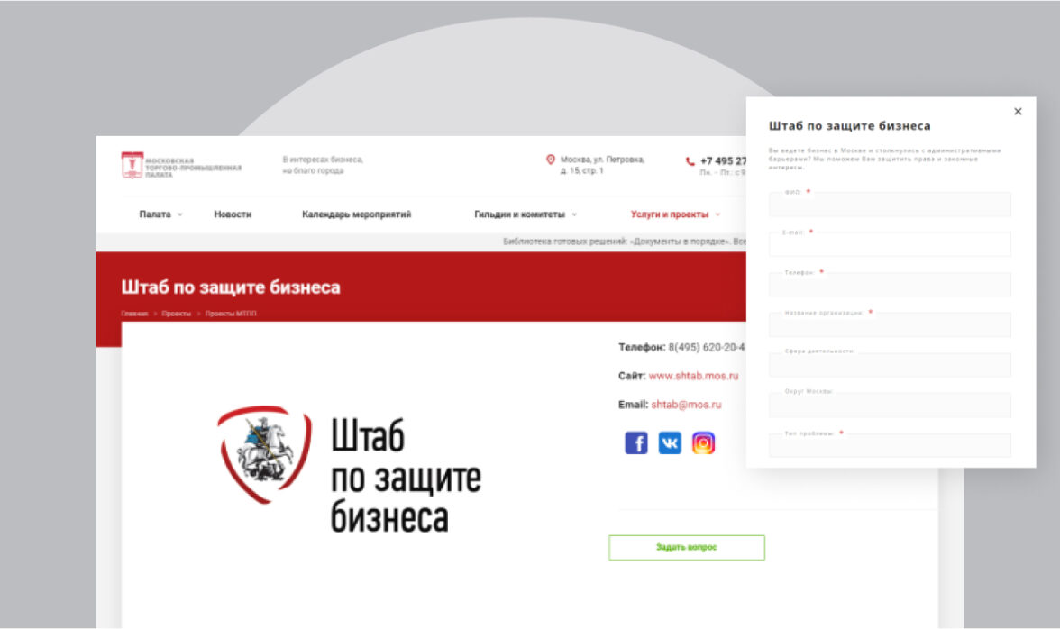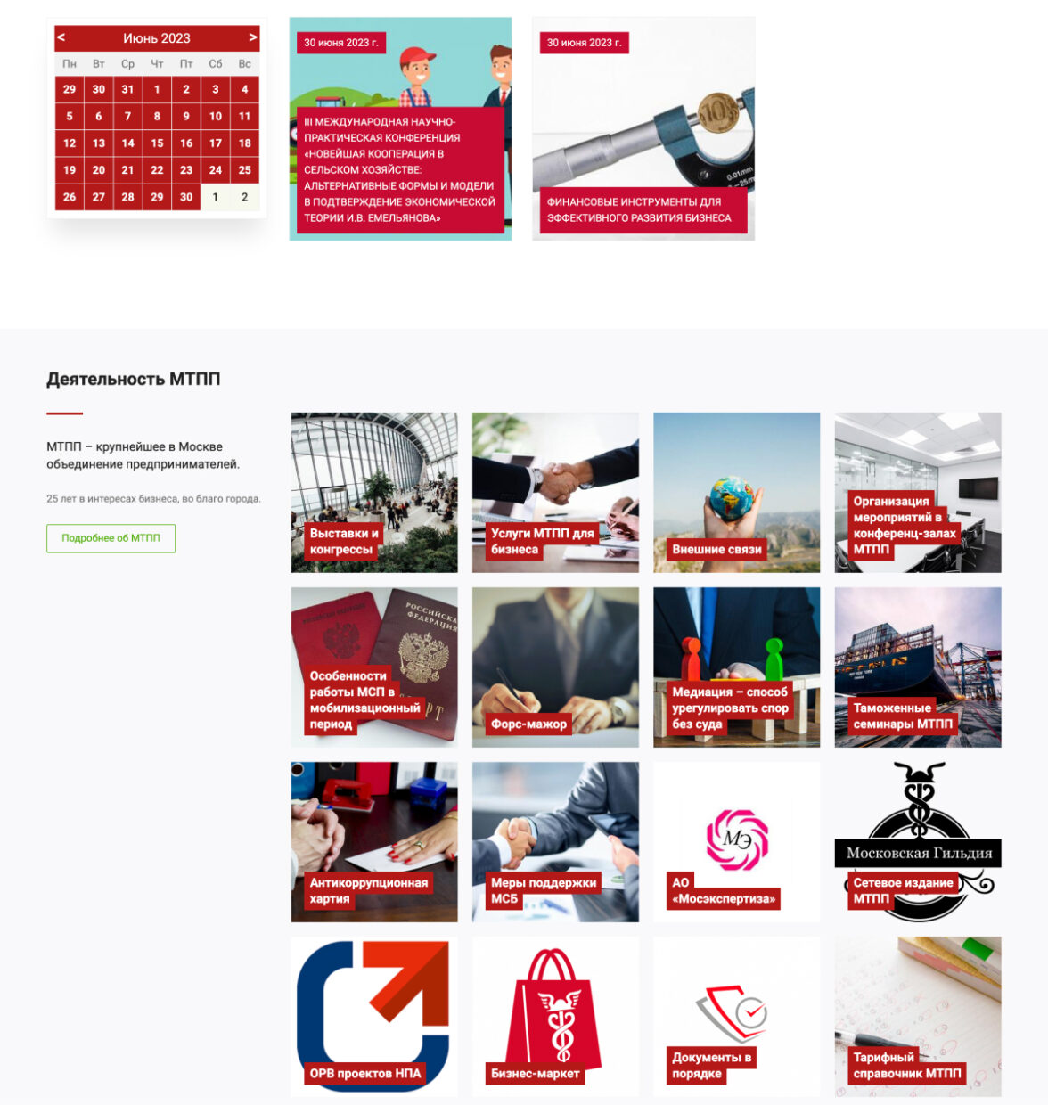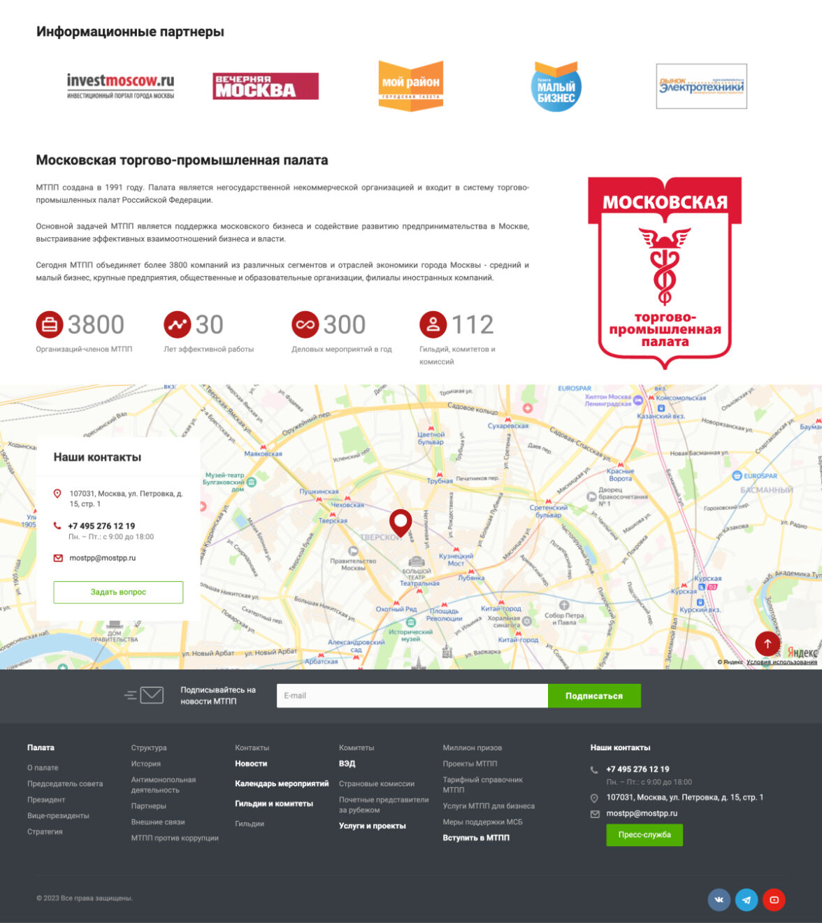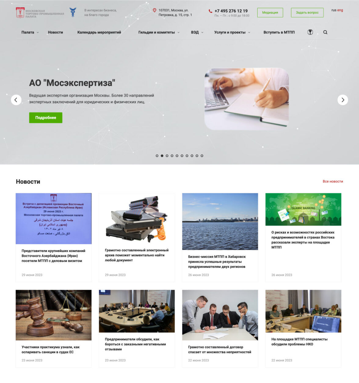 Корпоративный сайт для Московской торгово-промышленной палаты (МТПП)