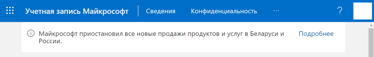 Сейчас пользователи лицензионных продуктов Microsoft в России видят в своем личном кабинете следующее сообщение.