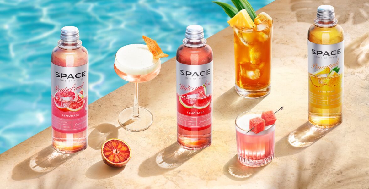 Для линеек лимонадов и безалкогольных коктейлей SPACE была проведена профессиональная фотосъемка. Акцент на визуальной эстетике напитков и их компонентов делает упаковку заметной и подчёркивает эмоционально-заряженный характер бренда, созданного для тех, любит яркие новые ощущения.