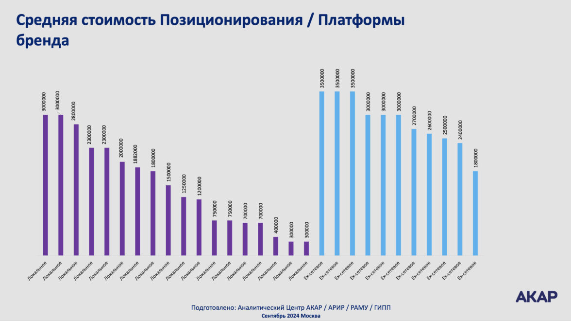Разброс цен на услуги, особенно если брать не средние по группам агентств, а данные по отдельным компаниям, действительно впечатляющий, есть предложения даже на скромные бюджеты. Например, среди исходно российских агентств минимальная и максимальная цена разработки позиционирования бренда различается десятикратно — в диапазоне от 3 млн до 300 тыс. рублей. В бывших сетевых агентствах эта услуга обойдется минимум в 1,8 млн, максимум — в 3,5 млн рублей.