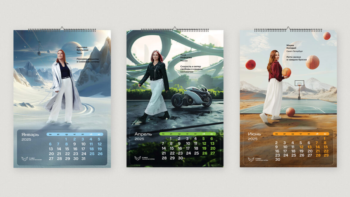 То, что в календаре будут реальные люди. Не профессиональные модели, которые могут сходу повторить любой референс. А еще это был «проект под ключ», в котором мы делали все — от разработки концепции до производства и развоза календарей по городам. Поэтому было архиважно по максимуму оптимизировать все процессы.