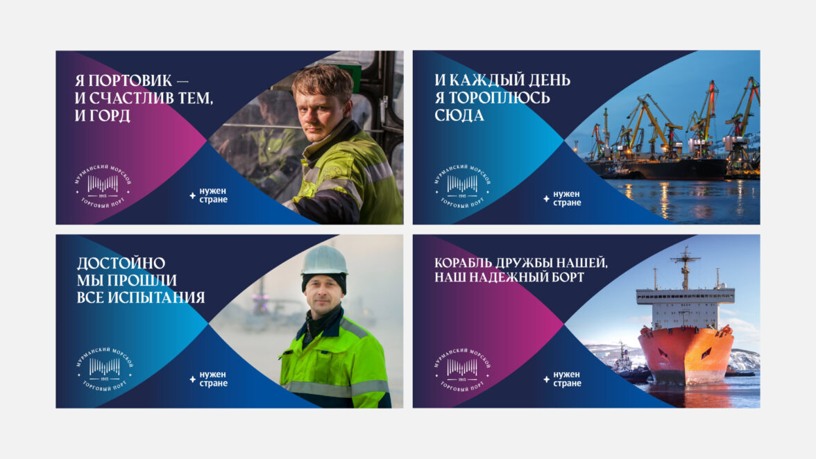 Когда мы обновляли фирменный стиль порта, я узнал о песне «Надежный порт» Александра Журавского — это гимн ММТП. Использовать строки из этой песни в рекламной кампании показалось естественным. К тому же сами портовики рассказывали, что гимн им очень даже знаком: он звучит в порту утром и вечером. Все это выглядело крепкой работающей историей: элементы нового фирменного стиля Мурманского порта, фотоимиджи с реальными работниками порта, воодушевляющие строки песни. Так и родилась концепция.