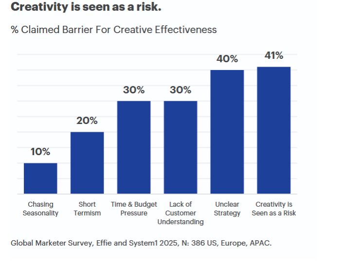 Современный маркетинг живет в парадигме страха и консерватизма, креативность не в моде, утверждают эксперты Effie и System1. Маркетологи предпочитают измеримые, понятные инструменты — такие как цена, которую легко просчитать и спрогнозировать. Креативность они воспринимают как вход на территорию неопределенности, где результат нельзя вычислить по формуле.