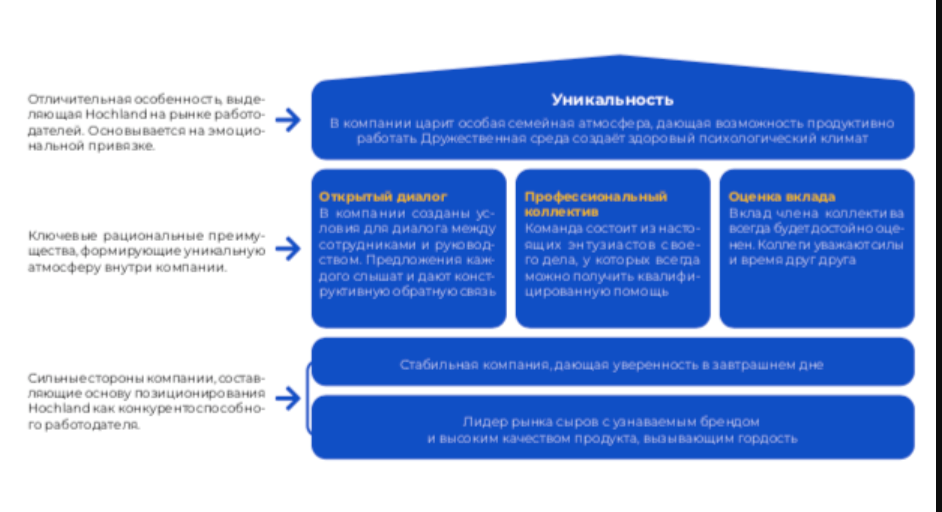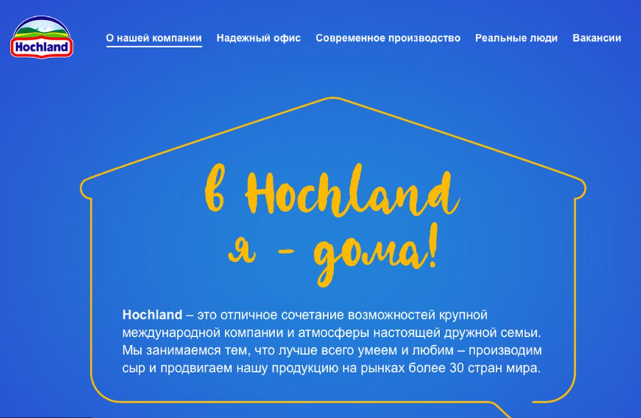 Именно такую цель преследовала HR-команда Hochland, обратившись в Бренд-центр hh. Задача состояла в разработке узнаваемого бренда работодателя и уникального EVP, соответствующего международным стандартам и учитывающего российские реалии.