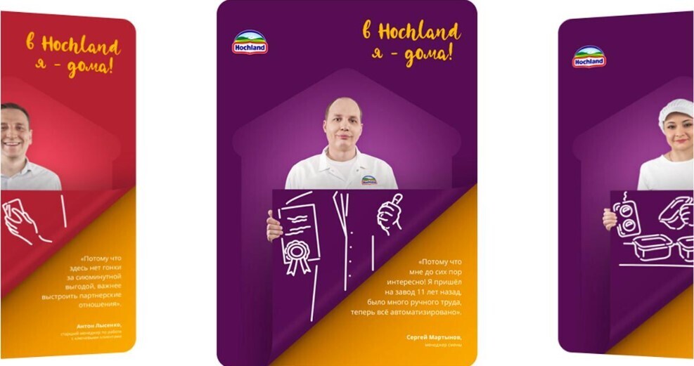 «Формулировки про семейную атмосферу, продуктивность, дружественную среду и здоровый климат — не просто красивые слова. Мы чувствовали это, когда проводили фокус-группы и интервью с ребятами из Hochland, причём от всех участников: HR-команды, работников производства, руководителей и топ-менеджеров».