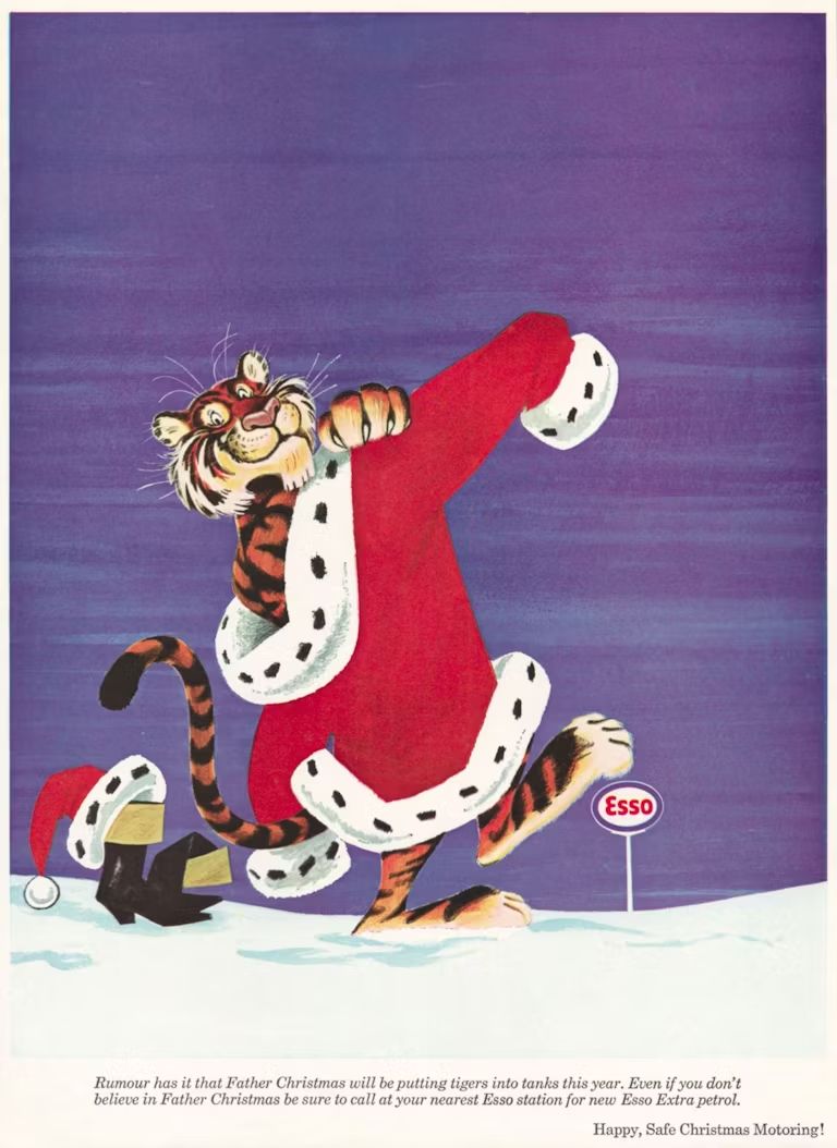 В 1953 году нефтяная компания Esso впервые поставила в свою рекламу слоган «посадите тигра в свой танк». Так компания надеялась убедить потребителей тратить больше топлива, военные ограничения на потребление которого были окончательно сняты в Британии в начале 1950-х. Количество автомобилей на дорогах страны в 1950-е утроилось, а конкуренция за внимание их владельцев со стороны производителей топлива достигла пика.