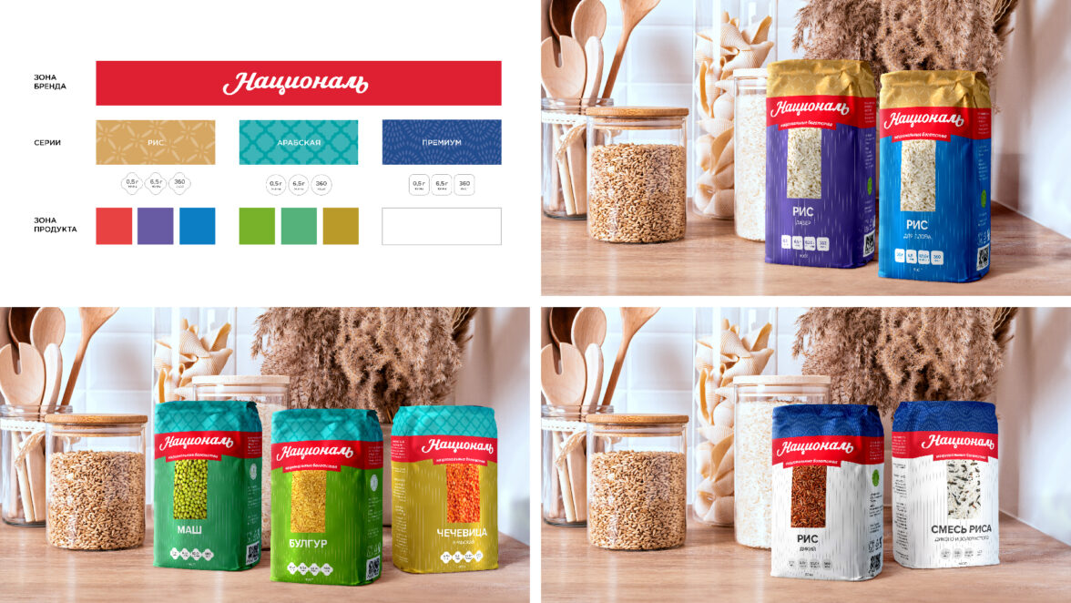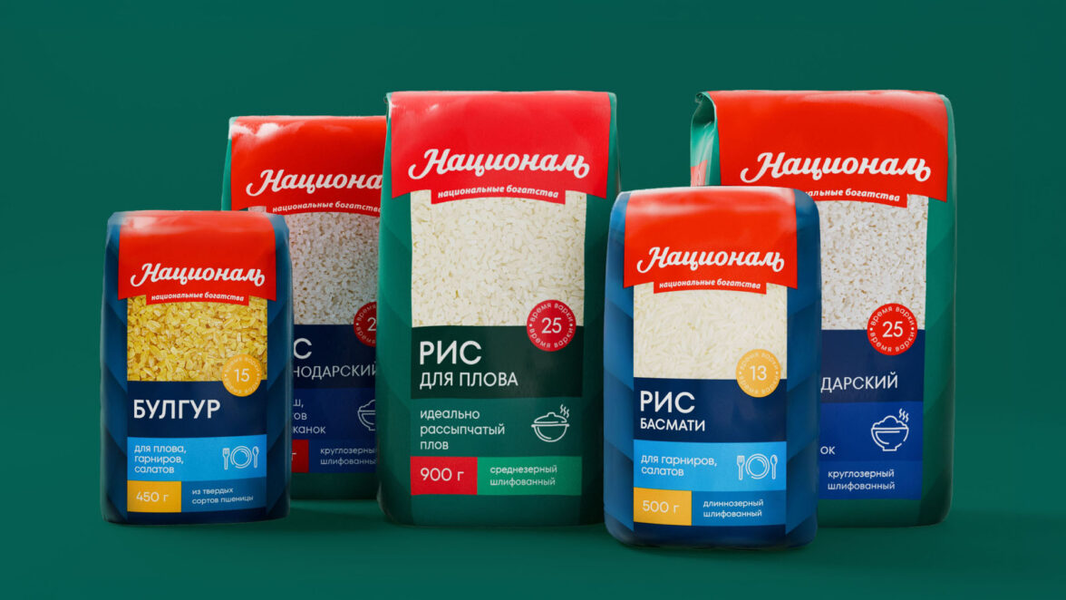 Главной задачей было обновление линейки риса «Националь»: ее нужно было сделать современной, простой, понятной, —, а также заметной на полке и раскрывающей ценности бренда.