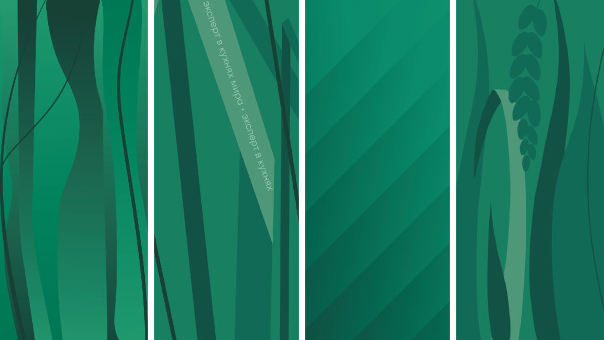 Были у концепций и уникальные черты. Так, на первой из них мы использовали изображение готового блюда, во второй в два раза увеличили окно с крупой, в третьей — попробовали заменить паттерн на растительный, а в четвертой сделали минималистичную концепцию без лишних деталей.