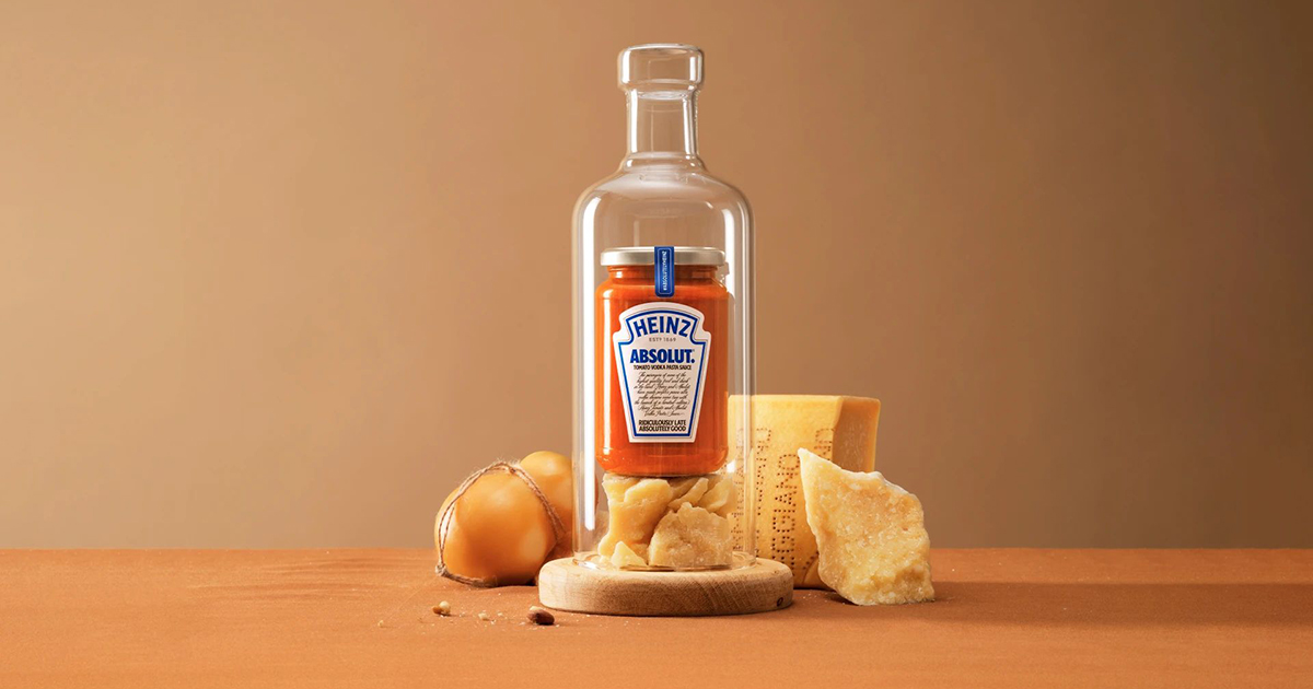 Вместе с производителем водки Absolut кетчуп Heinz создали уникальный продукт — томатный соус для пасты со вкусом водки Heinz x Absolut Tomato Vodka. Постеры, продвигающие продукт, появилась в модных журналах и в наружной рекламе, а также в соцсетях.