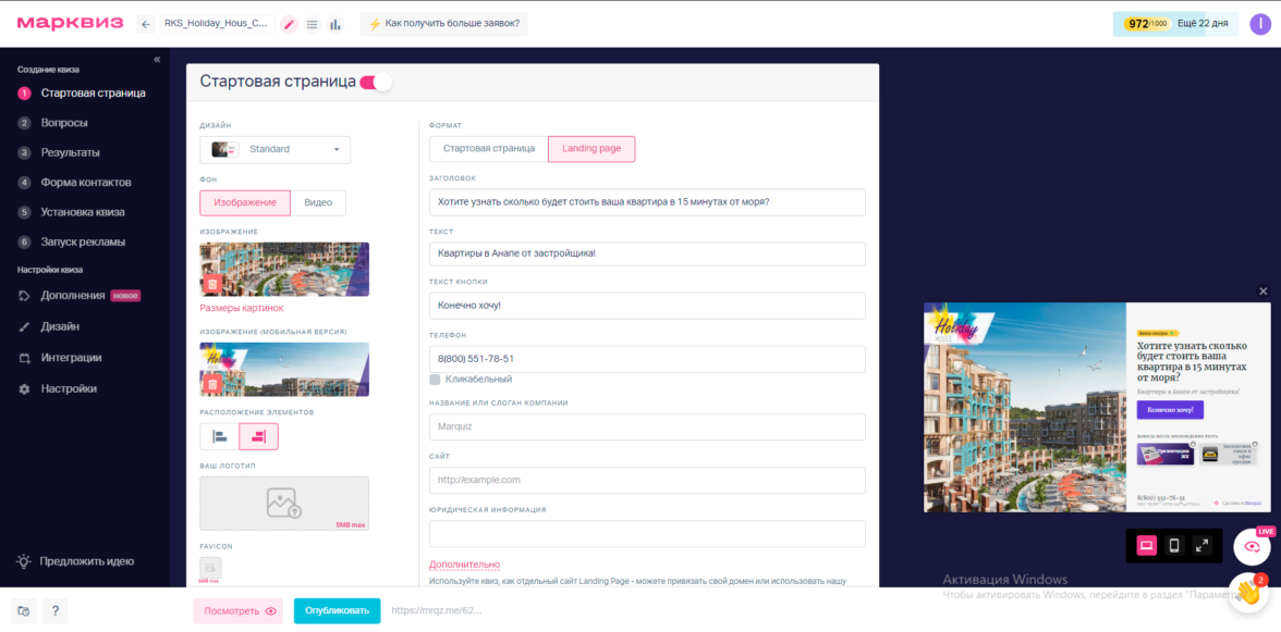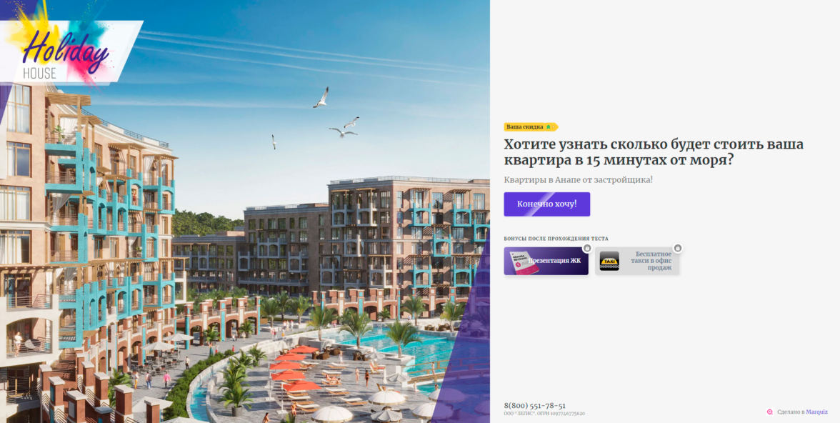 Создать эффективный квиз-лендинг для проекта Holiday House.