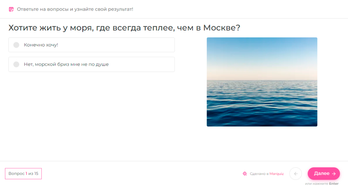 сервисов для создания квизов — Marquiz. Сайт конструктора отличается удобным интерфейсом и широкими возможностями. Сам квиз, помимо различных площадок, можно встроить в CRM-систему, сервисы
