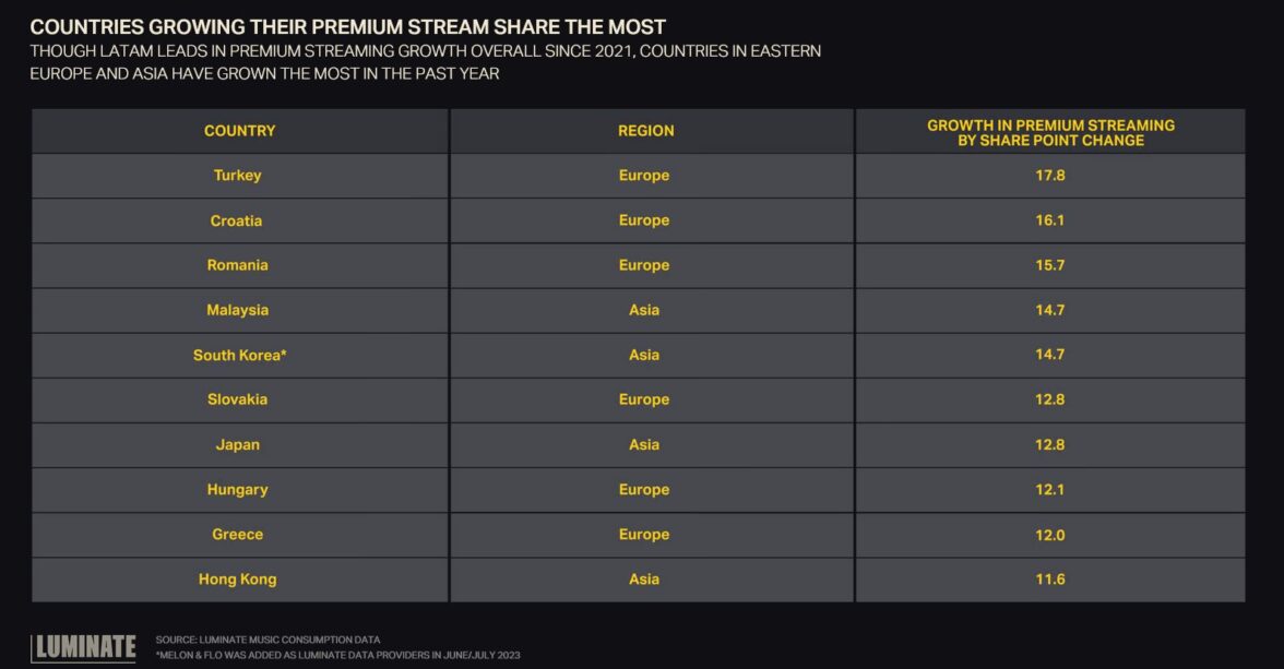 Количество прослушиваний музыки в платных и бесплатных аудиостримингах в 2024 году во всем мире выросло на 13% до 4,8 трлн композиций, оценили музыкальные аналитики Luminate, подразделения американской исследовательской компании Nielsen. Большая часть меломанов по-прежнему из США, но американцы стали чаще слушать музыку онлайн лишь на 5,6%, в то время как в прошлом году во всем мире (без США) количество прослушиваний выросло на 17,3%.