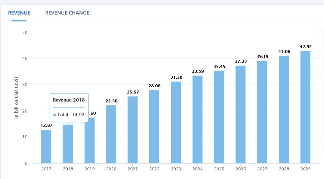 В денежном выражении в 2024 году глобальный аудиостриминг вырос не так значительно — на 7,3% до $33,6 млрд. В ближайшие пять лет темпы роста доходов аудиосервисов замедлятся. Среднегодовой рост составит 5%. В 2029 году объем рынка достигнет $43 млрд. На рынок США сейчас приходится большая часть доходов музыкальных сервисов — $13 млрд (доля 39%).