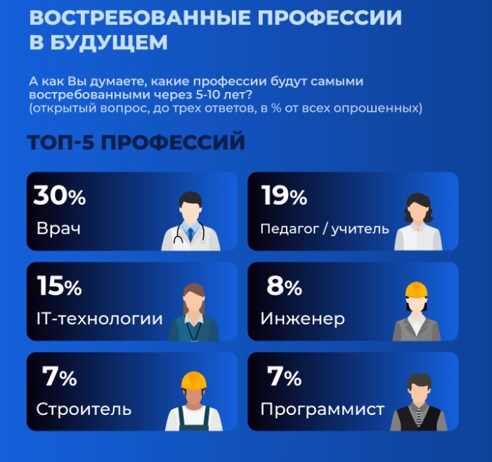 Самые востребованные профессии в будущем по данным опроса ВЦИОМ.