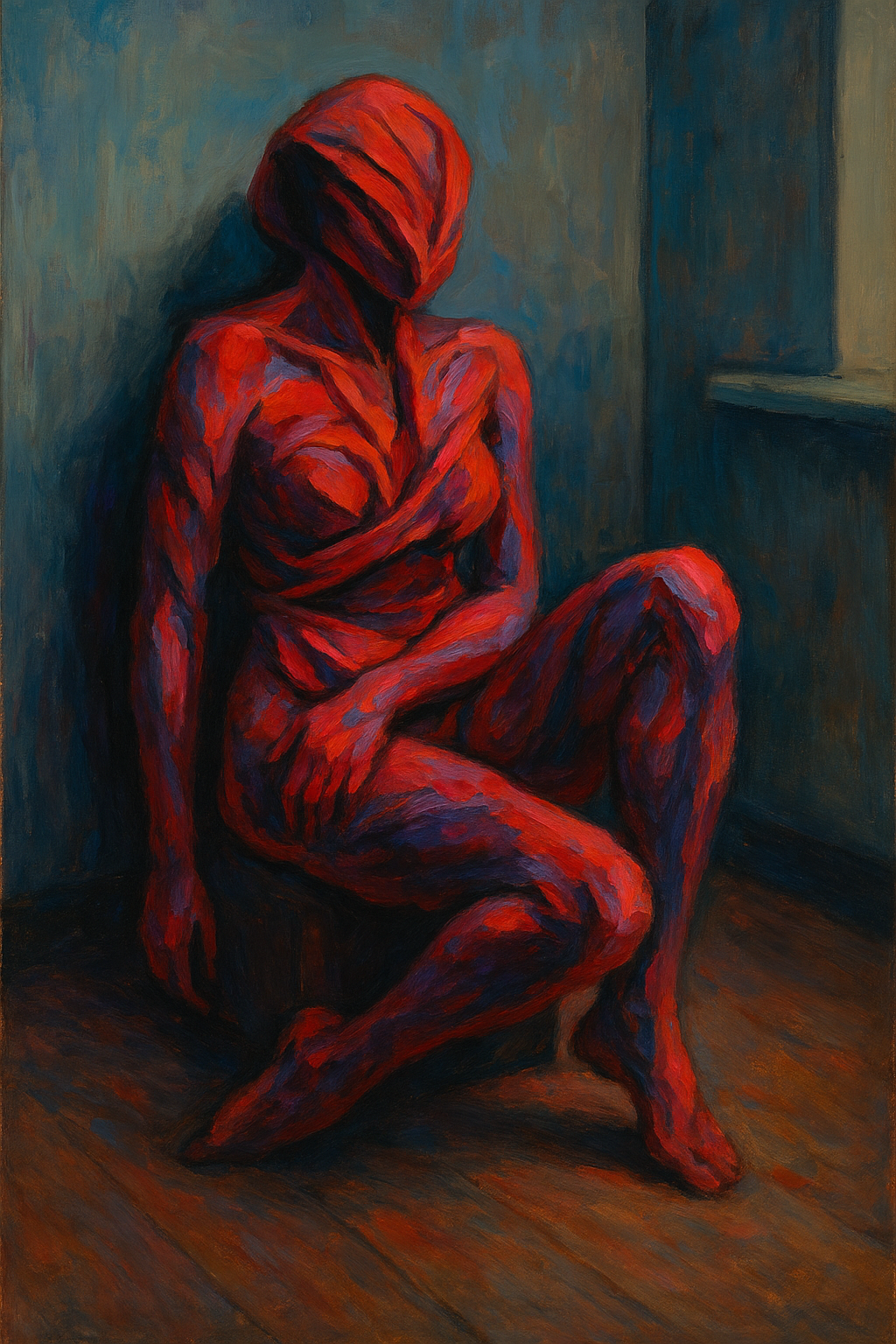 Автор работает на границе текстиля и перформативной скульптуры. В этом проекте — тканевые формы, собранные в объём, напоминающий вывернутое тело. Работа не столько «про тело», сколько про попытку собрать внутреннее наружу. Камера будет скользить по поверхности, а свет подчеркнёт каждую складку — не как дефект, а как текстуру опыта.