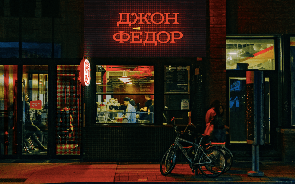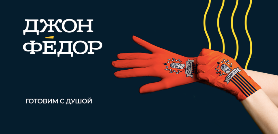 Мы сделали для «ДжонФёдор» альтернативный фирменный стиль — современный, но не слишком экспрессивный знак без использования бургера и его прямых ассоциаций.
