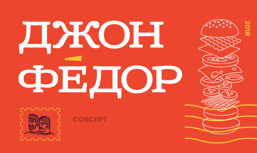 История этого концепта взяла старт с экспресс-дизайна «Студии Лебедева» для бургерной «ДжонФёдор». Тогда логотип заказчику абсолютно не понравился.