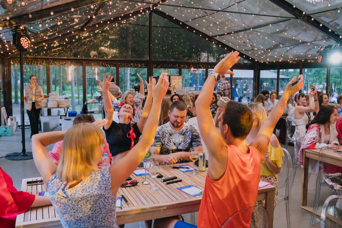 Тимбилдинг на летнем корпоративе начался с «Музыкального бинго»! Команды формировались прямо на площадке, так что рядом оказывались коллеги из разных департаментов. Для многих это стало первым поводом познакомиться поближе и пообщаться вне рабочих задач.