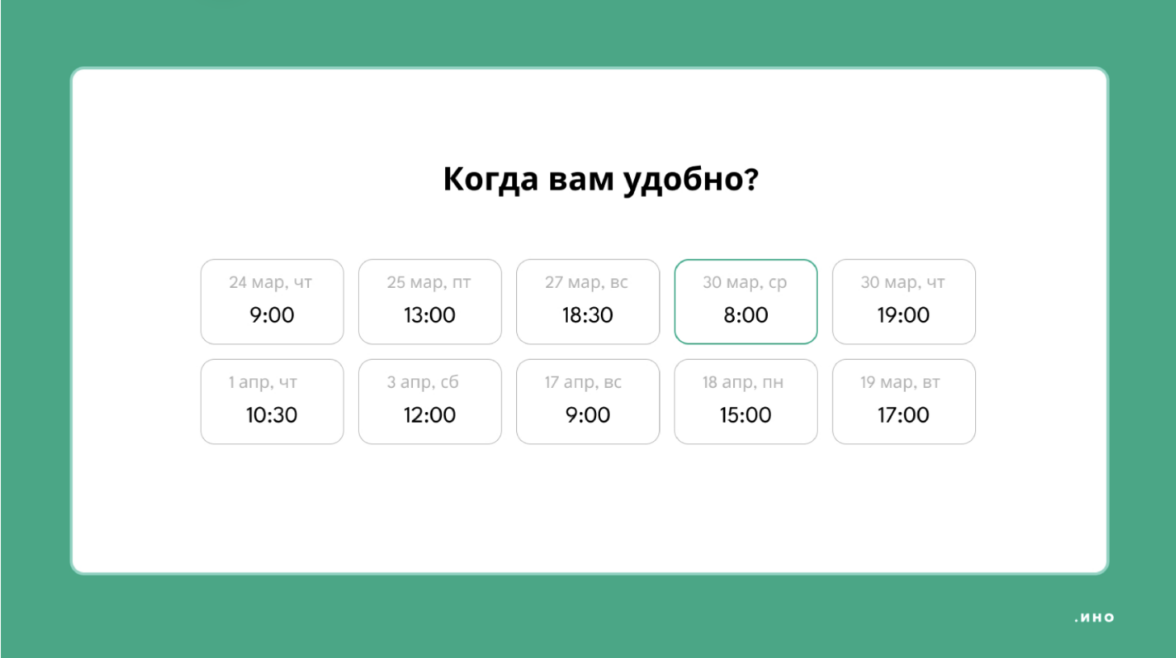 В ЛК есть возможность выбирать удобную дату для созвонов большого количества людей