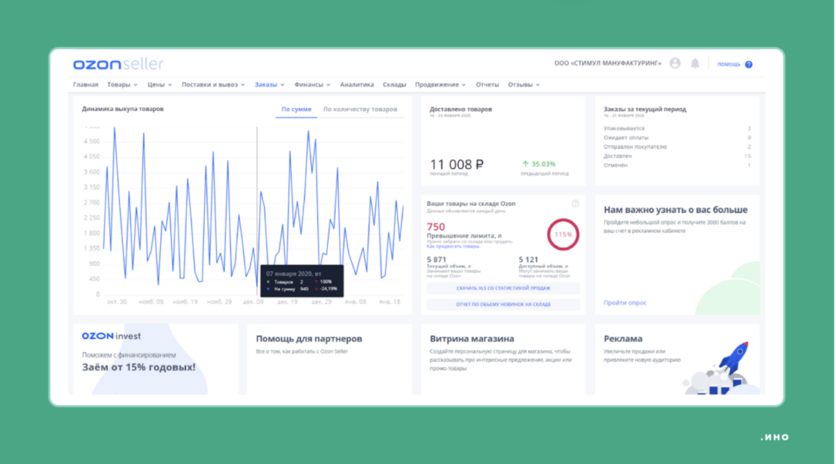 Маркетплейс в личном кабинете партнёра показывает статистику совершённых заказов