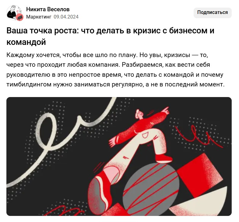 Пример оформления публикации Никиты Веселова, операционного директора SL
