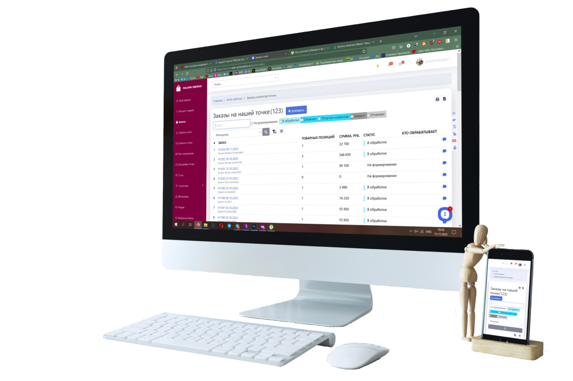 Например, Falcon Service — это CRM с системой личных кабинетов, где можно отслеживать все заказы и историю взаимодействия с клиентами, а также быстро проверять контрагентов по базе. Больше о готовом решении здесь.