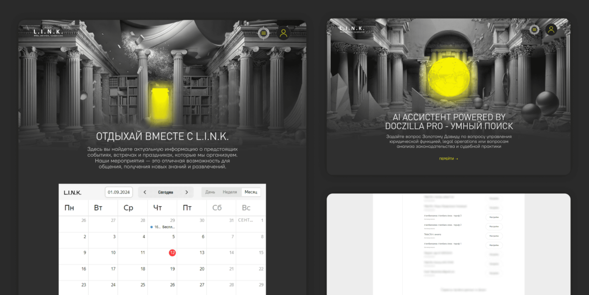 К нам обратилось юридическое сообщество LINK — крупное объединение профессиональных юристов, которым требовалась удобная цифровая среда для взаимодействия и обмена знаниями. Первоначально запрос клиента выглядел достаточно стандартно: создать платформу, где участники могли бы хранить и использовать различные материалы — документы, статьи, уроки, презентации. По сути, это классическая база знаний, которая часто реализуется в рамках онлайн-курсов.