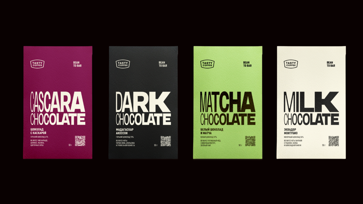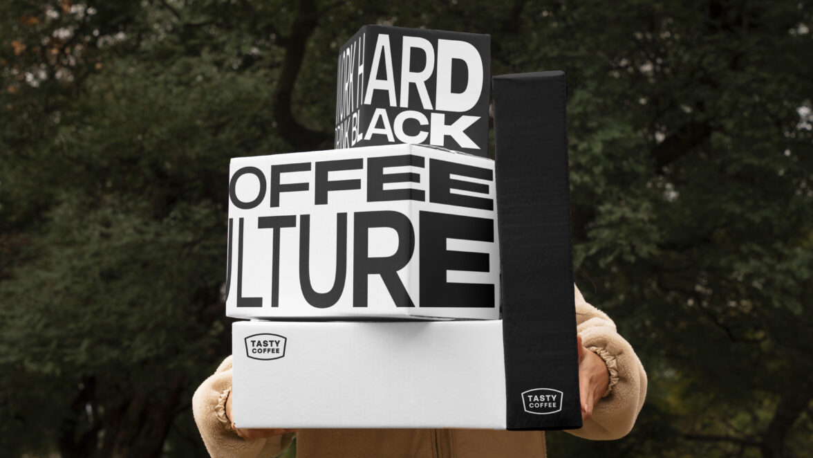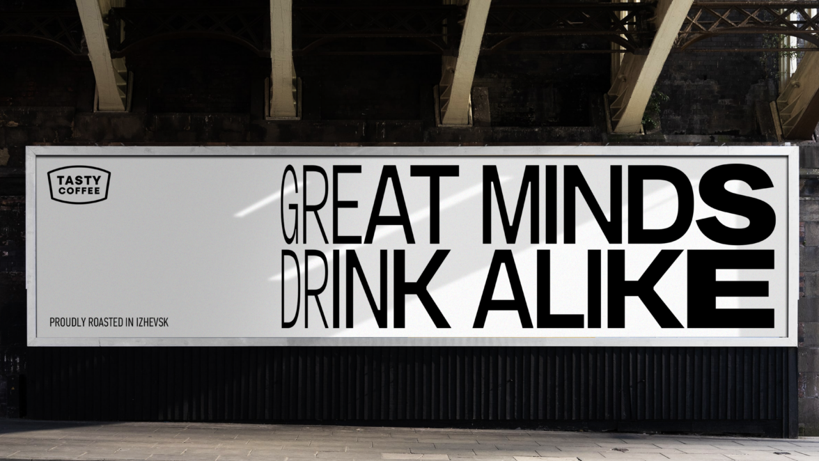 Основой обновленной системы айдентики стало шрифтовое решение, для которого был разработан вариативный шрифт Tasty Coffee. Шрифт динамично расширяется и сужается, меняя высоту букв и жирность начертания, таким образом, транслируя метафору расширения кофейной культуры и роли бренда в этих изменениях. Эта гибкость делает типографику уникальной и узнаваемой.