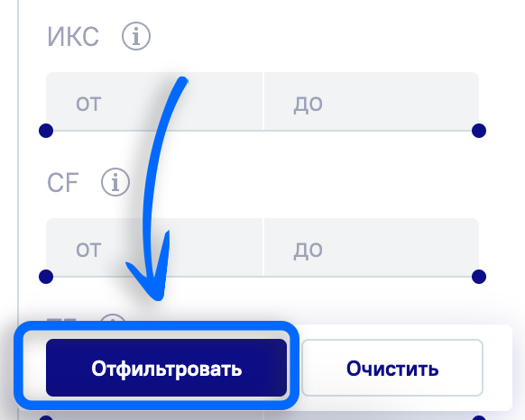 Шаг 2. На экране поиска площадок задайте параметры сайта-донора для простановки ссылок и нажмите «Отфильтровать».