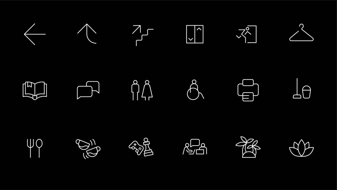 В итоге мы разработали навигацию для шести этажей нестандартного пространства: от CJM и типологии навигационных элементов — до логотипа, шрифта и фирменных пиктограмм. Как мы и задумали, концептуально логотип и весь визуальный стиль — символический мост между прошлым и будущим Левашовского хлебозавода и Ленинграда–Петербурга.