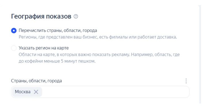 На уровне групп объявлений важно указать географический таргетинг. Это позволяет точно выбрать регионы показа, чтобы реклама показывалась только там, где находятся ваши потенциальные клиенты, и избежать ненужных расходов на аудиторию вне зоны интереса.