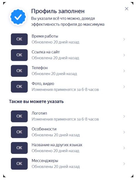 Прежде чем запускать кампанию, убедитесь, что ваш профиль в Яндекс Бизнесе полностью заполнен. Это обязательное условие: только так вы сможете воспользоваться всеми преимуществами Директа, включая точный таргетинг, аналитику и управление ставками.