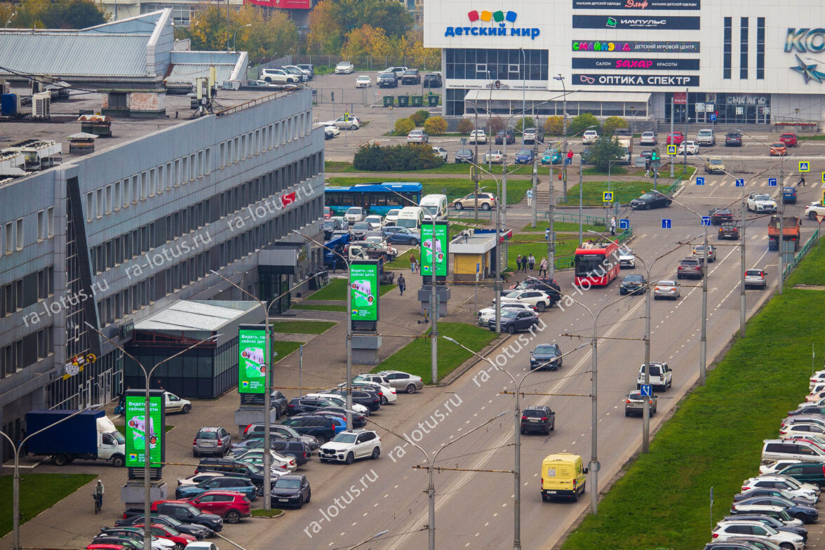 LED-экраны ЛОТУС расположены в деловом и торговом центре Новокузнецка с максимальной транспортной и пешеходной активностью. Рядом находятся: