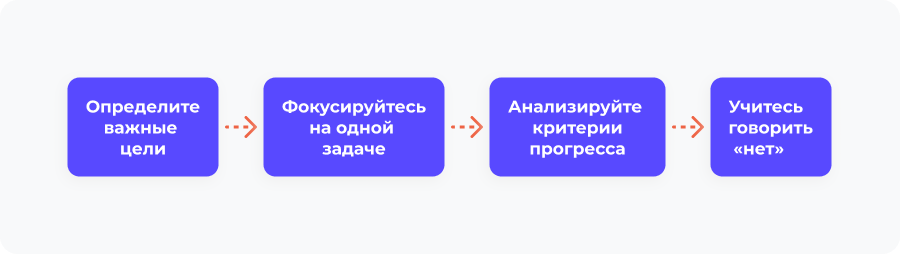 Полезно регулярно спрашивать себя: «Как эта задача связана с моими главными приоритетами?». Если вы не можете четко объяснить, как то, что вы делаете, приближает вас к важной цели, возможно, это занятие не стоит вашего времени.