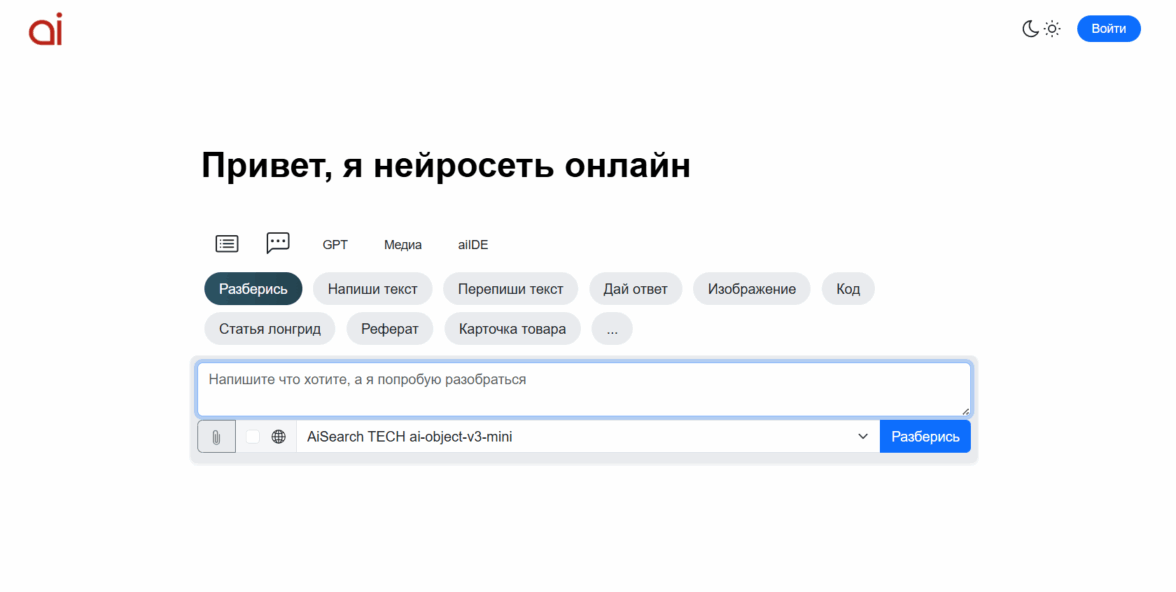 AISearch — сервис с ИИ‑моделями, который используют как точку входа к нейросетям для генерации текстов, в том числе коммерческих предложений.
