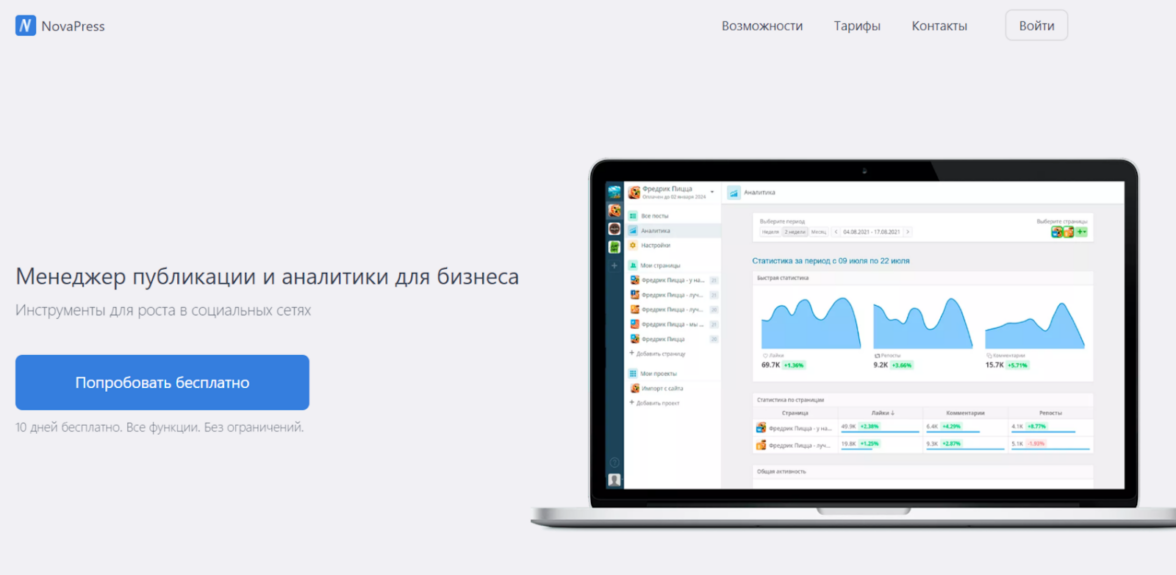 Работа с аналитикой. Измеряйте эффективность ваших кампаний и выбирайте наилучшие стратегии для роста. NovaPress помогает увеличить охват, заинтересованность и продажи с помощью подробной аналитики.