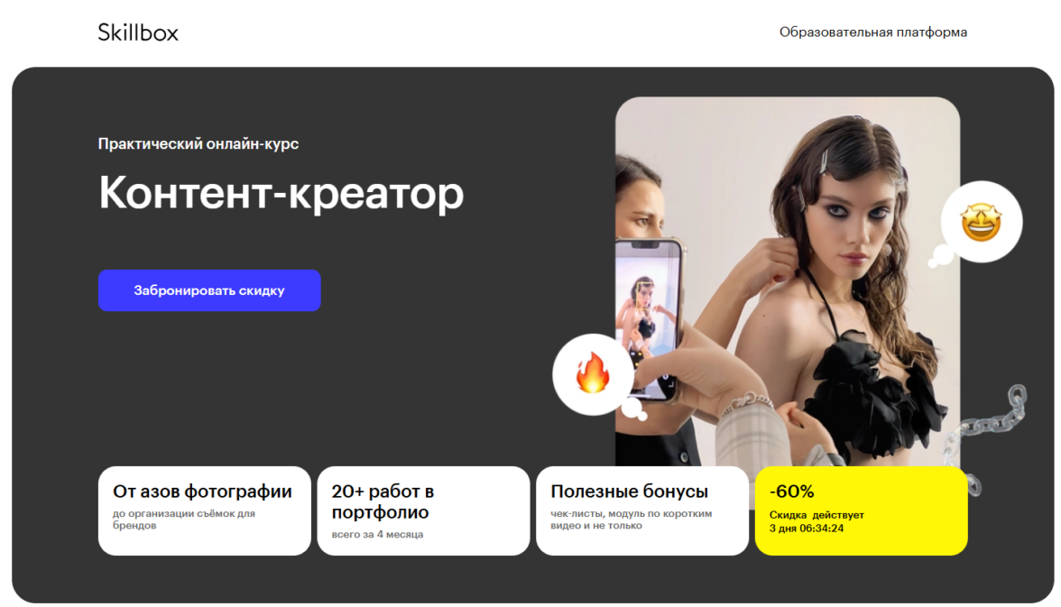 Эту программу обучения основам создания продающего контента можно пройти меньше чем за месяц. За это время вы узнаете, из чего состоит контент-план, как писать качественные тексты и «разбавлять» их правильным визуалом. Дополнительно изучите инструменты для создания видеоконтента разной направленности.
