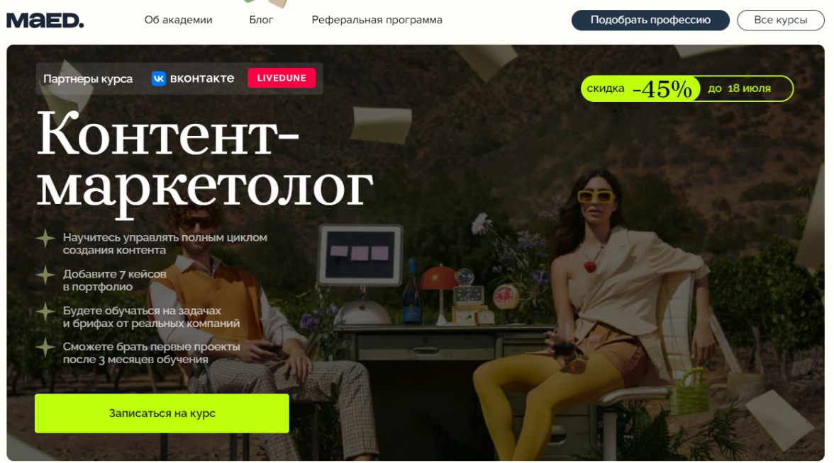 Контент-маркетолог от MAED — практика на задачах по брифам от реальных компаний.