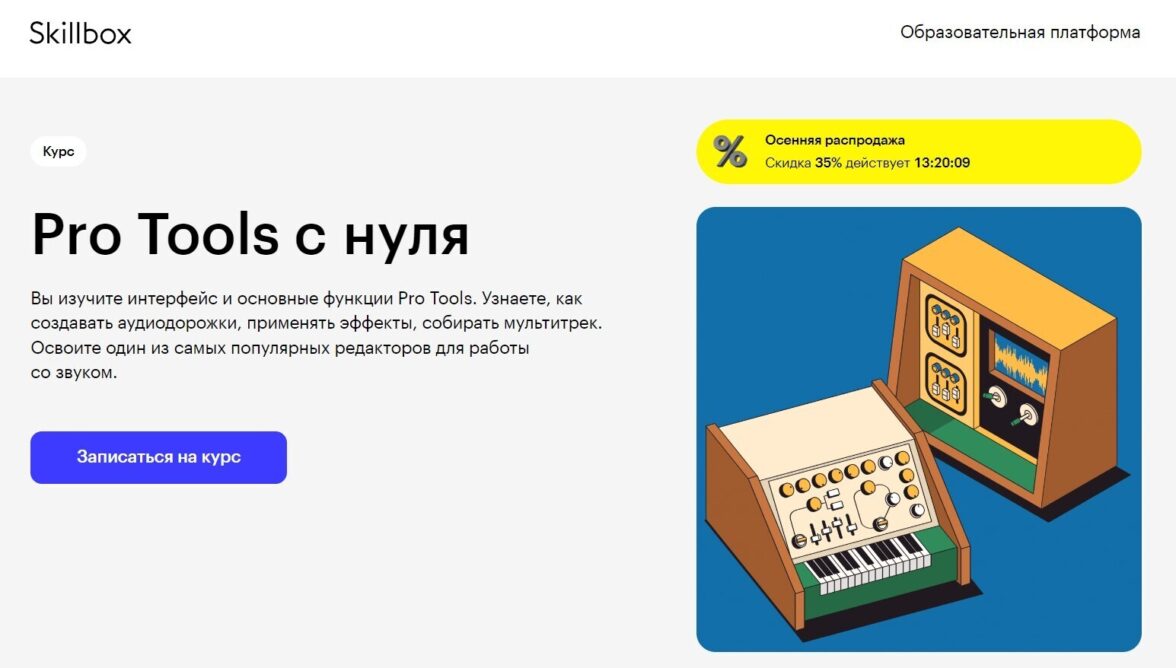 Pro Tools с нуля от Skillbox — лучшие видеоуроки по освоению цифровой звуковой рабочей станции Pro Tools.