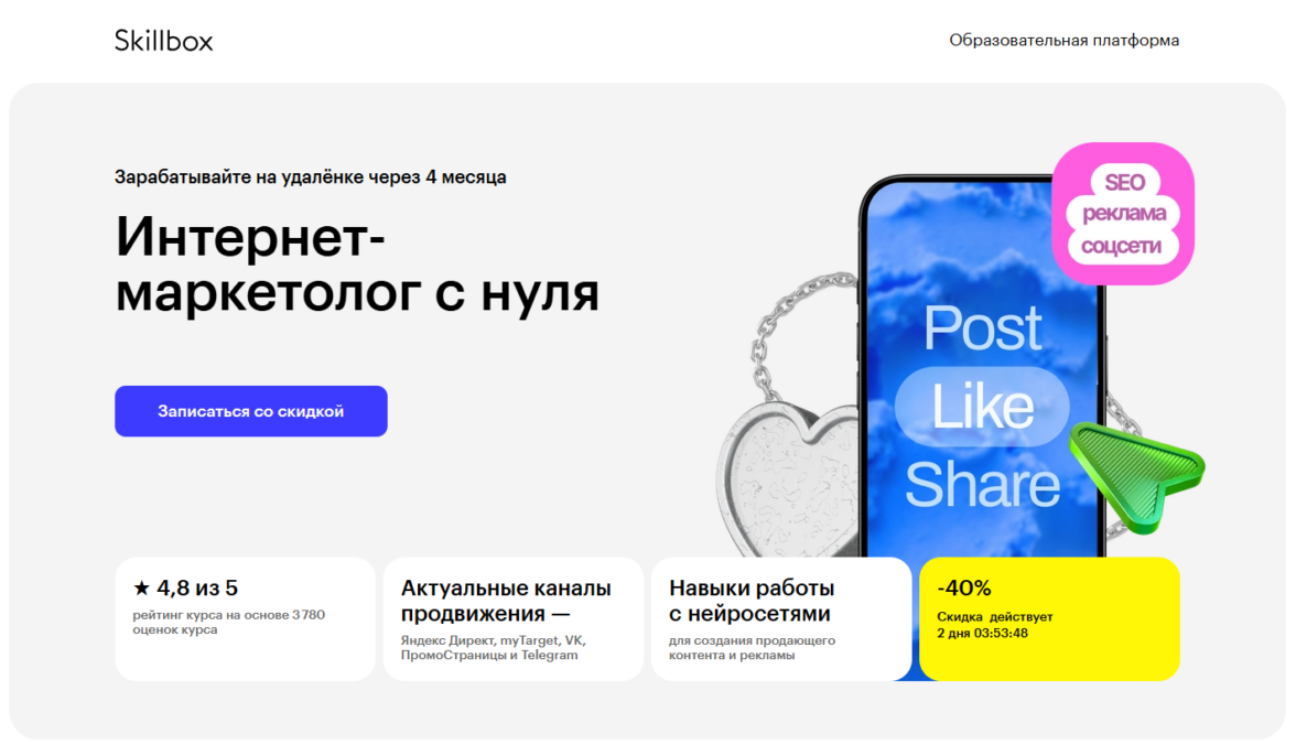Интернет-маркетолог от Skillbox.ru — поэтапная разработка высокоэффективной маркетинговой стратегии для портфолио.