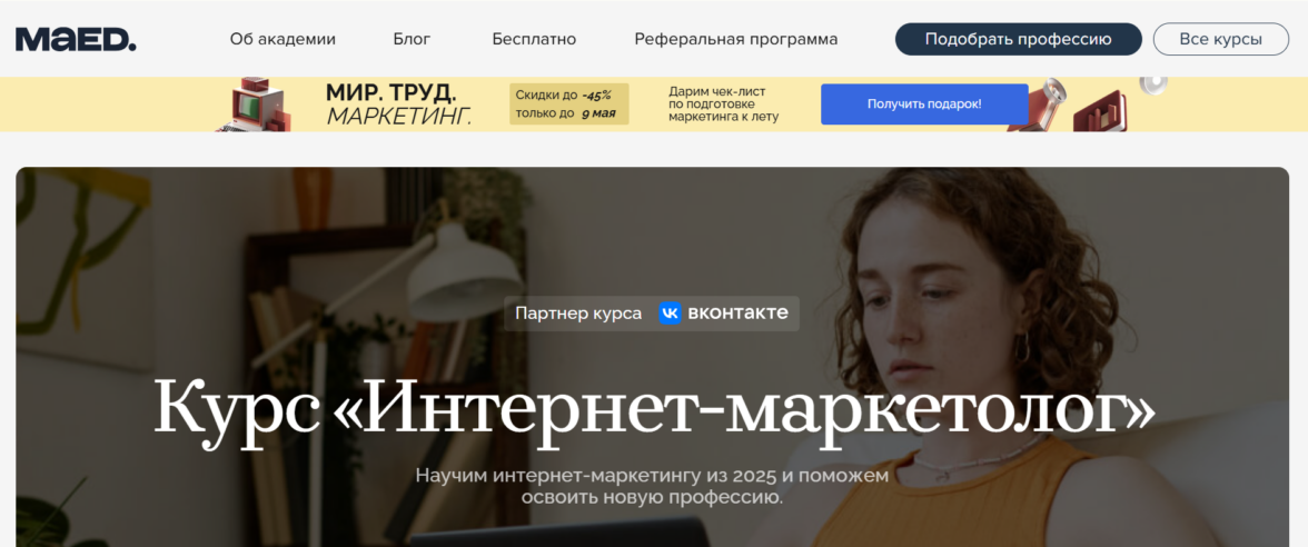 Интернет-маркетолог от MAED — три тарифных плана для новичков и специалистов в маркетинге.