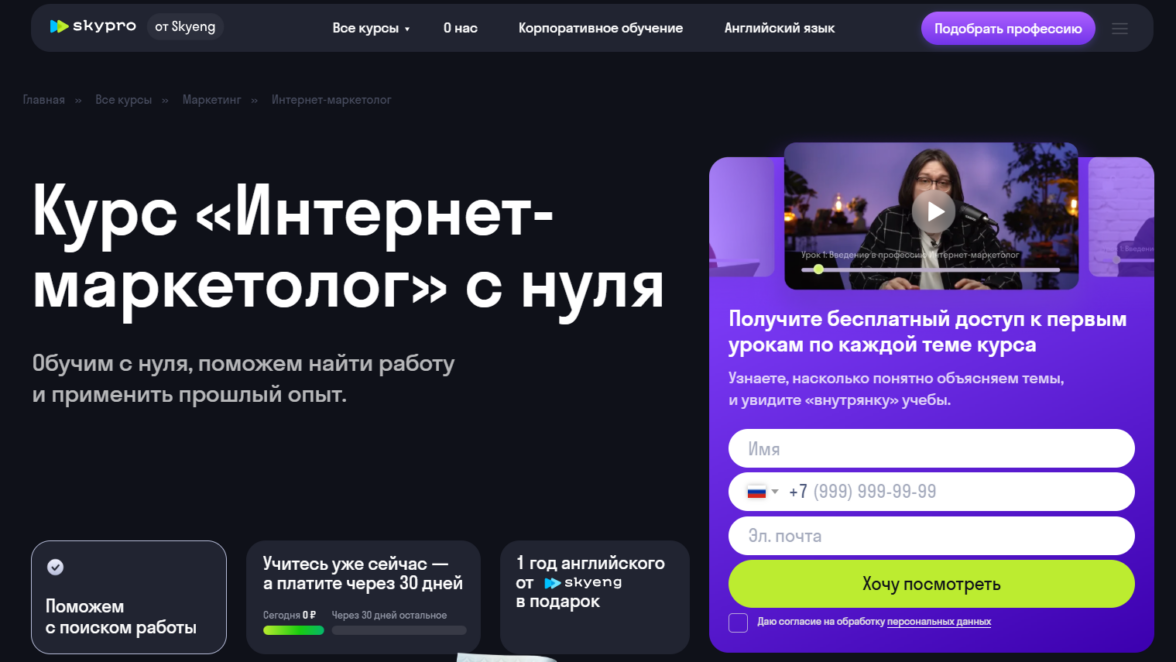 Интернет-маркетолог от Skypro — проектные работы по аналитике и оптимизации маркетинговых кампаний.